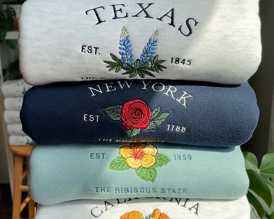FELPA CON FIORI DI STATO RICAMATI PERSONALIZZATI